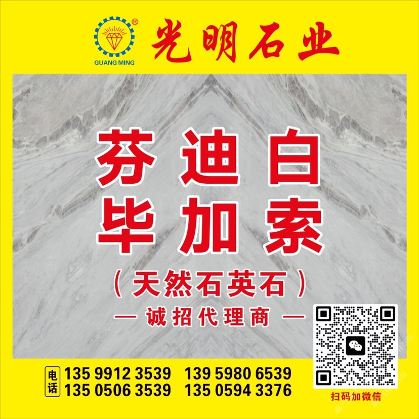 公司主要生產加工國內外大理石、花崗巖、工程板、臺板、異形線條及地鋪石系列,目前擁有一系列先進生產設備,具備加工優(yōu)質石材的能力,可加工各種規(guī)格平板、弧形及異形板,承包國內外多座大理石、花崗巖礦山,荒料庫存達數(shù)十萬立方,大板庫存量達幾十萬平方,可承接國內外各種大型工程。多年來先后在北京、上海、浙江、天津、廣東、江蘇、湖北、四川、新疆、江西等地設立分公司,健全了公司的銷售網絡,使光明的品牌深入人心,產品深得廣大顧客的一致好評。良好的信譽也使公司先后榮獲“文明經營戶”、“誠信單位”、“明星企業(yè)”、“石材之星”、“全國質量信得過產品”、“全國質量服務消費者滿意企業(yè)”、“守合同、重信用單位”的榮譽稱號,并通過了DHSAS18001健康管理體系認證、GB/TI9001-2000-ISO9001:2000質量標準和ISO14001:2004環(huán)境管理體系認證。\\\\\\\\\\\\\\\