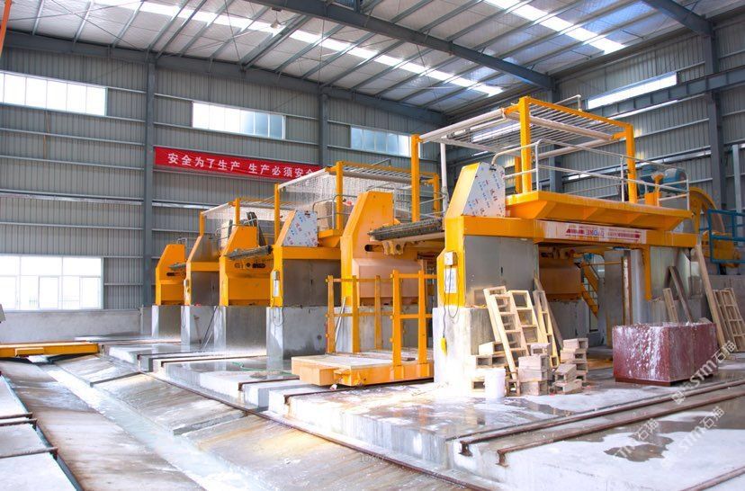 公司擁有3臺(tái)進(jìn)口沙拉據(jù),12臺(tái)進(jìn)口靖佑紅外線切割機(jī),2臺(tái)水刀切割機(jī),各類線條機(jī)、仿形機(jī)、雕刻機(jī)等等50多臺(tái)(套)。每周切割產(chǎn)量約為5000平方左右,每周成品出廠量可達(dá)3000方左右。\\\
