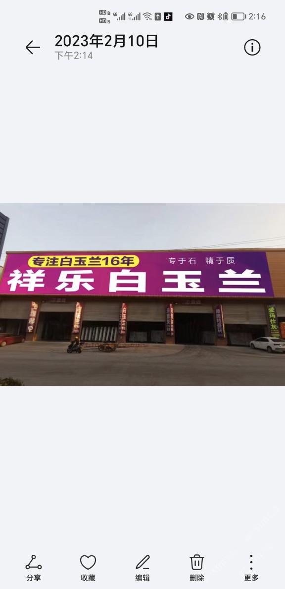 專營(yíng)白玉蘭、閃電,月均到貨量3000噸,大板庫存量白玉蘭10萬平方,閃電3萬平方