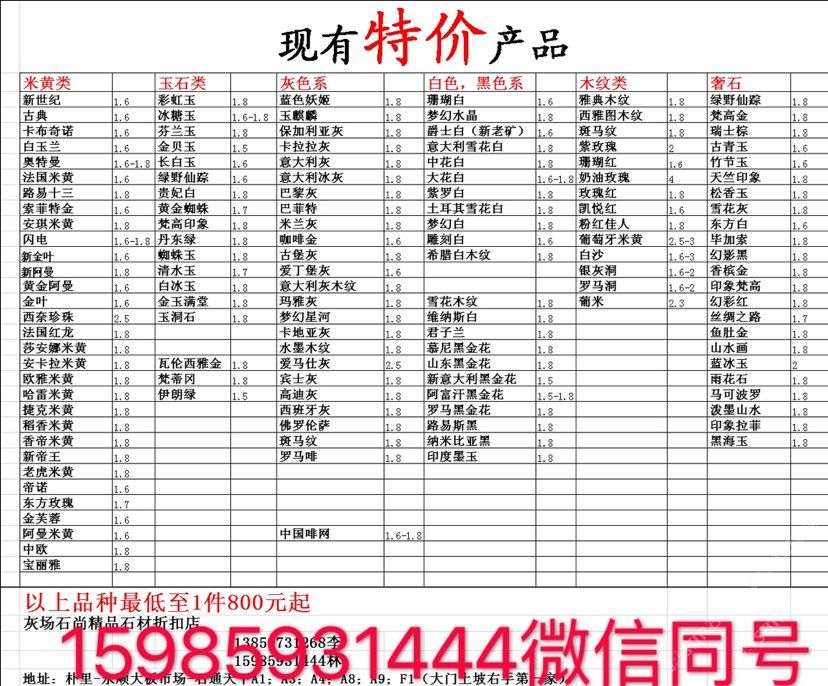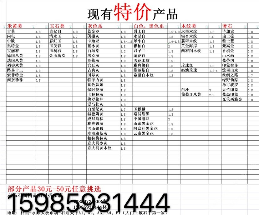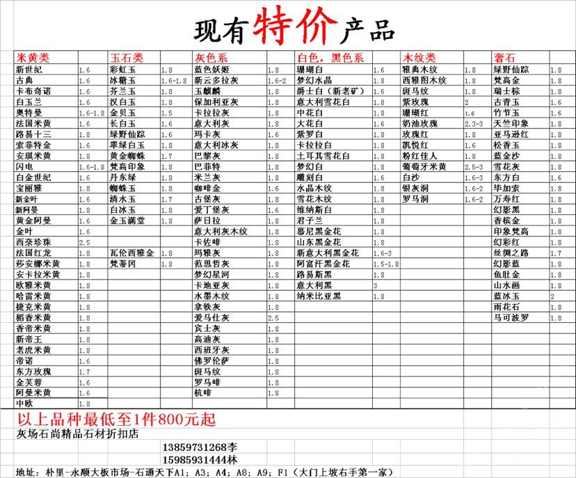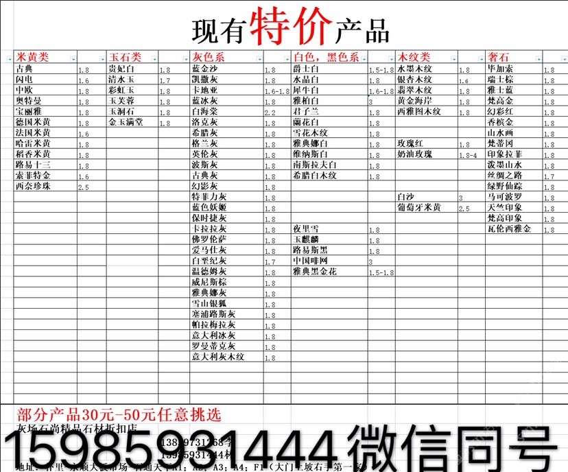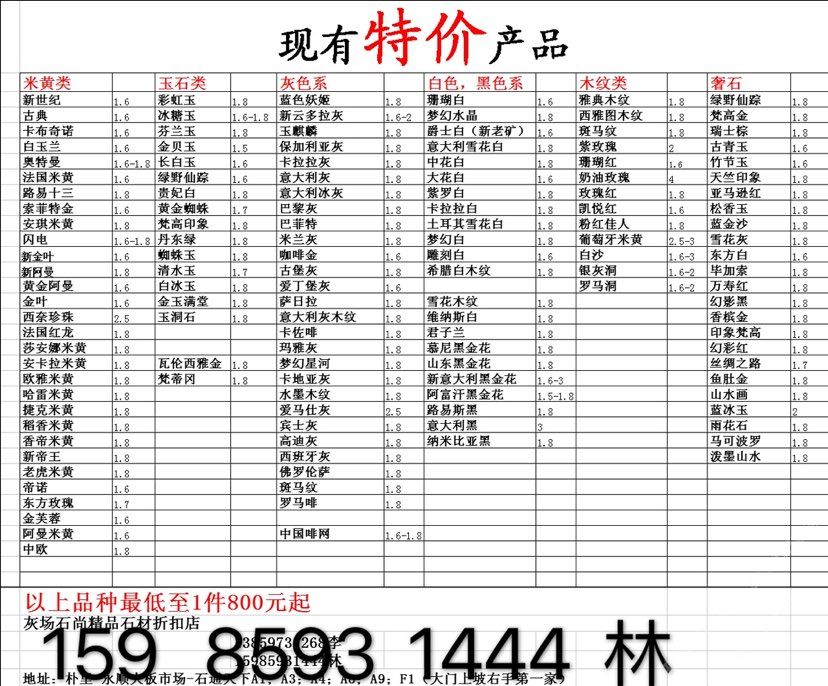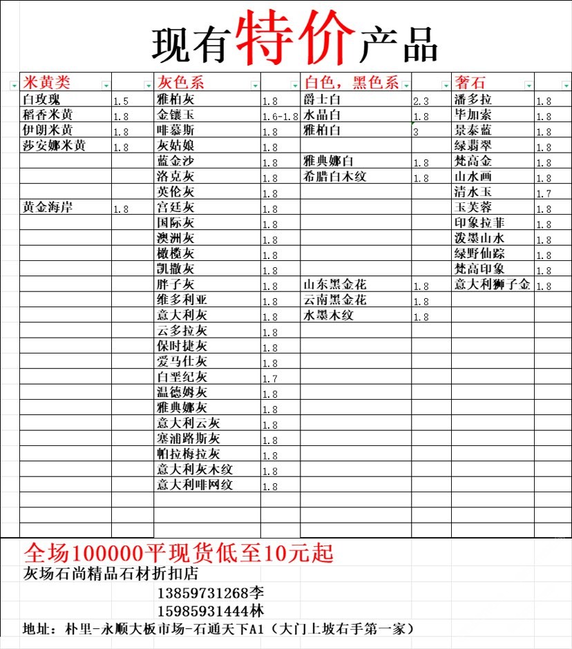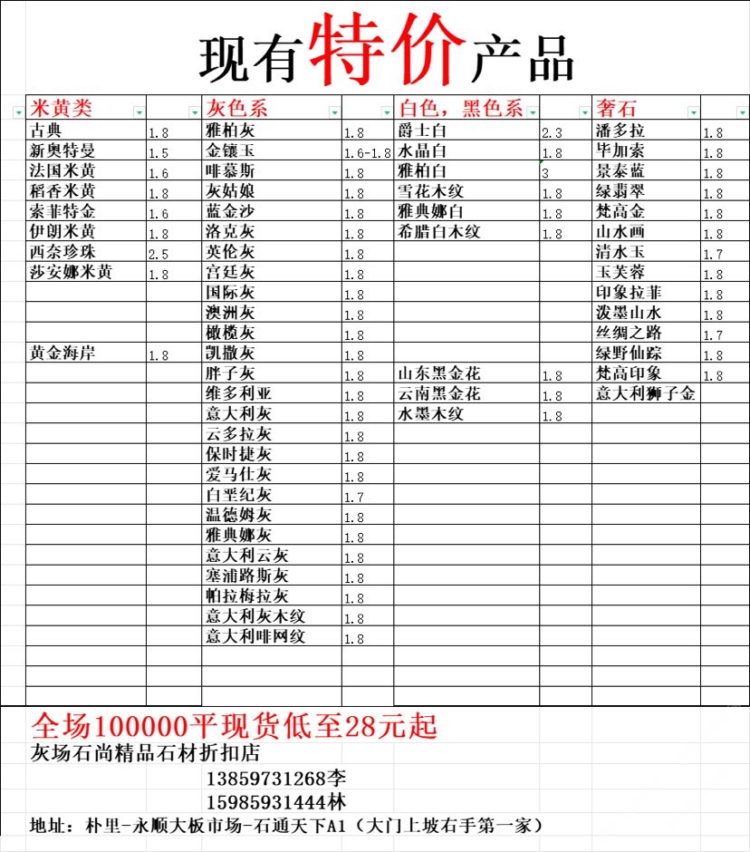 現(xiàn)有100000平大板特價(jià)(百來個(gè)品種),低至30元起
