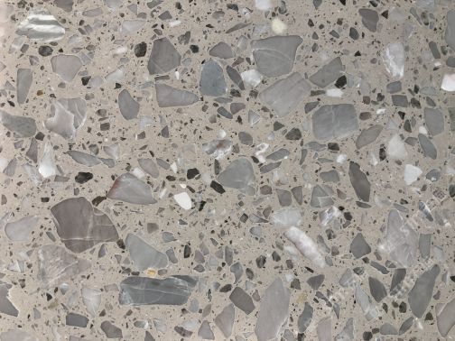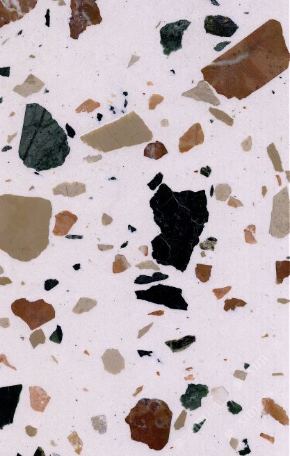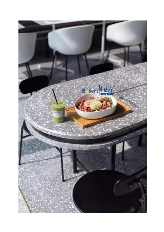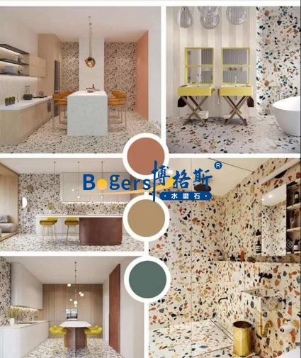 隨著工藝水平和材料品質(zhì)的巨大突破,新型預(yù)制無機水磨石采用環(huán)保型無機粘劑,不含樹脂膠水等,通過高頻高壓抽真空震動壓制而成,硬度更高更耐磨,施工更靈活方便。憑借其時髦大氣的設(shè)計呈現(xiàn)出一種慢慢的感