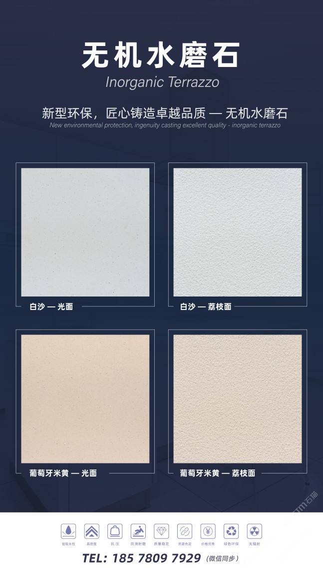 小石頭網(wǎng)絡(luò)科技有限公司自主研發(fā)的無機水磨石系列產(chǎn)品,目前提供兩種網(wǎng)紅款式:細顆粒無機水磨石,分為白沙米黃和葡萄牙米黃。這款水磨石密度高,適用于室內(nèi)外,無需擔心地面鋪裝出現(xiàn)返堿的問題,而且黃金尺寸無需復雜排版,色彩保持一致。此外還可以根據(jù)您的需求,定制切割厚度,確保契合您的項目。產(chǎn)品性價比極高,歡迎隨時咨詢我們,我們還可以為您提供樣品,為您的工程項目多一個更好的選擇!