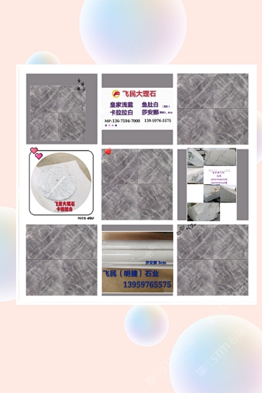 飛民大理石 聯(lián)系人:黃先生    136****7000 查看 手機(jī)號(hào)碼:無 主營范圍: 石材工藝品、其他、異型加工、花崗巖加工、 企業(yè)地址:福建南安水頭鎮(zhèn)盛達(dá)石材城C4明捷石材