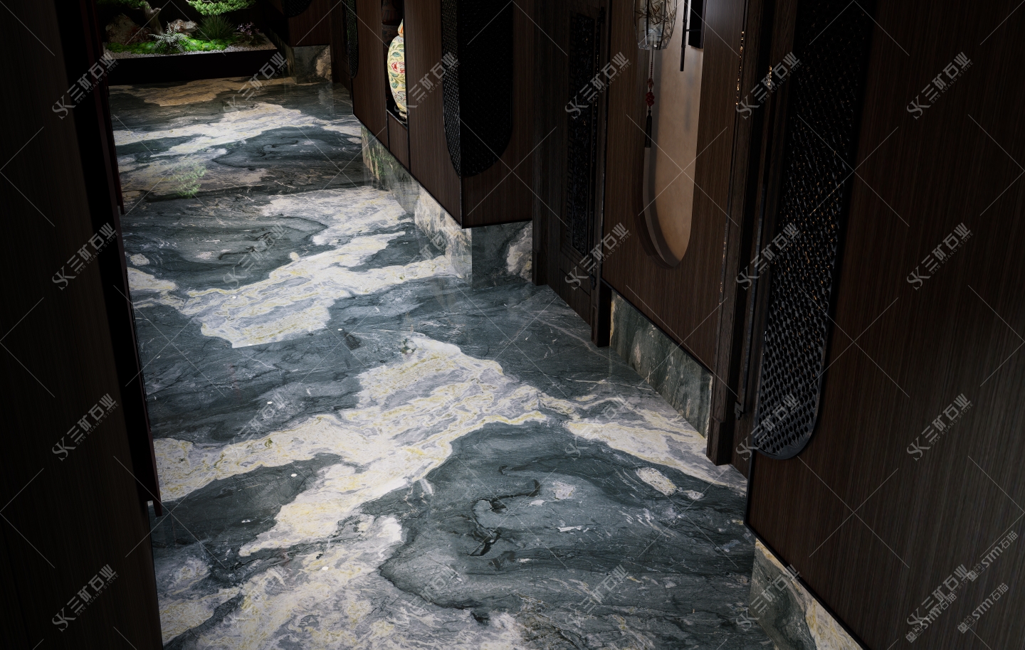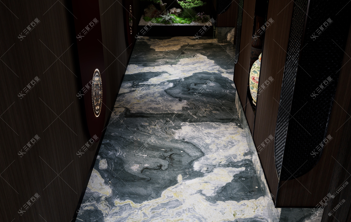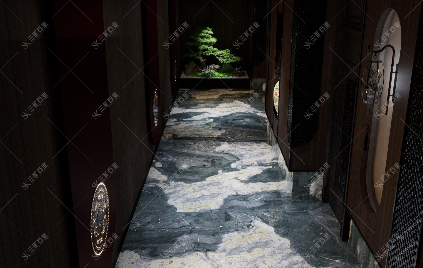 新中式走廊,石材運用 堪比絕倫