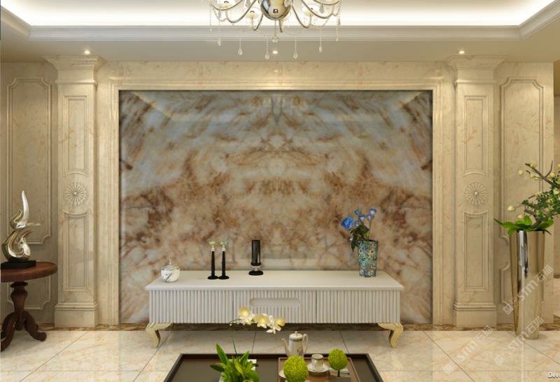 黃花冰玉做背景墻效果杠杠的