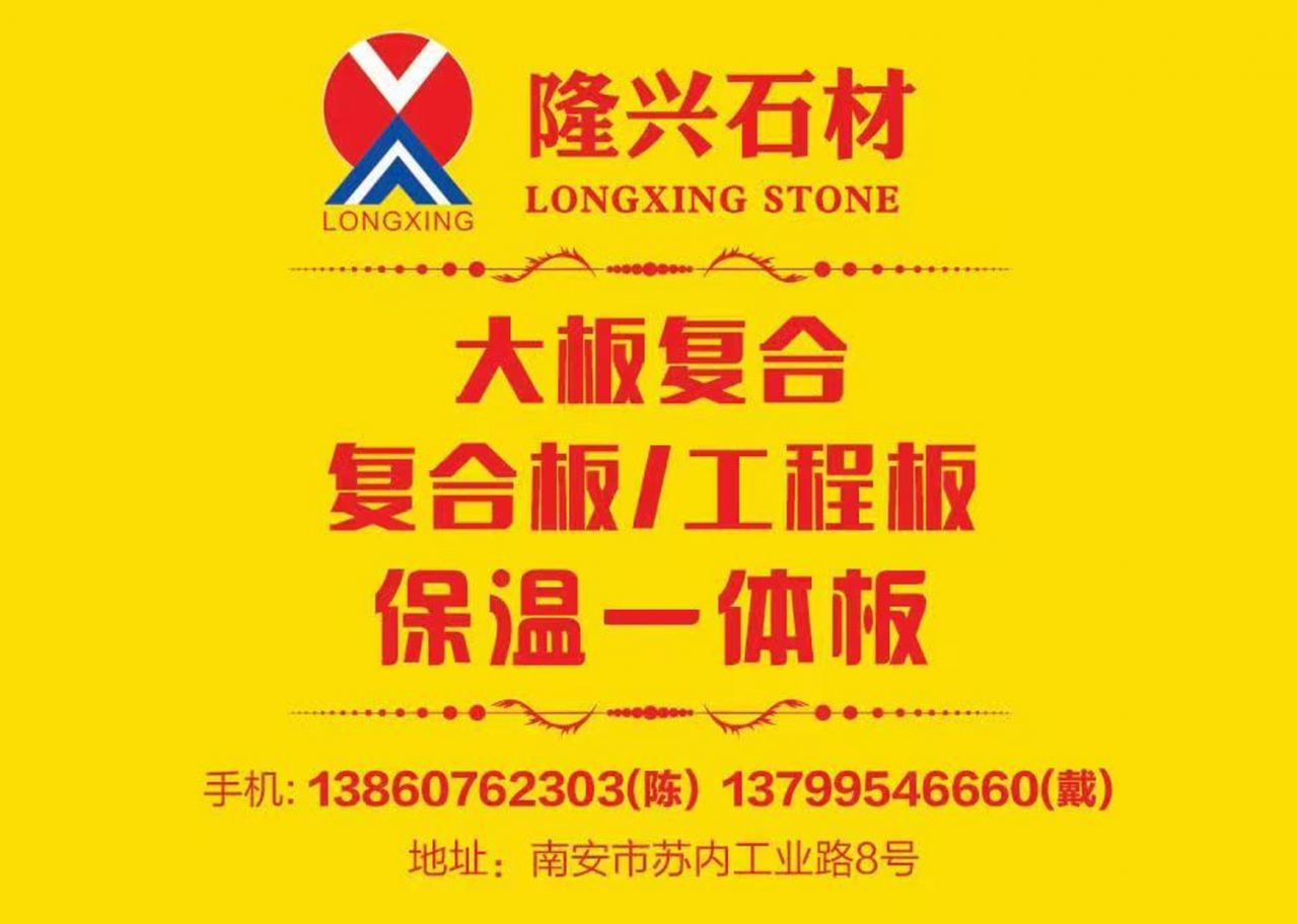 隆興復(fù)合板 聯(lián)系人:戴巧玲    137****6660 查看 137****6660 查看 主營范圍: 石材交易市場、石材外貿(mào)、 企業(yè)地址:福建南安石井鎮(zhèn)蘇內(nèi)工業(yè)區(qū)8號