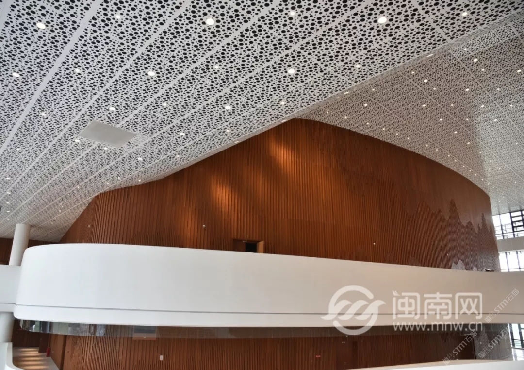 發(fā)布信息: 泉州大劇院整體設計猶如市花“刺桐花”的泉州市公共文化中心,環(huán)灣面海,欣欣向榮。公共文化中心位于東海片區(qū)山海中軸線中段,毗鄰泉州市政府,四大主體文化場館泉州科技與規(guī)劃館、東海工人文化宮、泉州大劇院、泉州圖書館一起成為“亞洲多元文化發(fā)展中心”。自2015年8月項目啟動建設以來,倍受泉州市民關注,這里將成為文化新家園。 “四朵花瓣”之一的泉州大劇院即將于2019年6月30日率先揭幕。 18日上午, 泉州大劇院舉行了 開幕演出季新聞發(fā)布會。 坐落于東海的泉州市公共文化中心 “四朵花瓣”之一的“海絲之花” 率先揭開了神秘面紗。 室內設計延續(xù)外立面元素, 抽取海洋元素疊浪與海面波光等為設計意向, 水平向的穿孔鋁板像絲綢一般輕盈通透, 表達出舞蹈的節(jié)奏與音樂的韻律, 也體現(xiàn)出泉州作為“海上絲綢之路”起點城市的文化特點?!昂=z樂章”為設計主題, 建筑外立面設計采用雙層表皮結構, 內層為玻璃幕墻,外層為金屬穿孔鋁板表皮, 水平方向的波浪形曲線設計室內設計延續(xù)外立面元素, 抽取海洋元素疊浪與海面波光等為設計意向, 水平向的穿孔鋁板像絲綢一般輕盈通透, 表達出舞蹈的節(jié)奏與音樂的韻律, 也體現(xiàn)出泉州作為“海上絲綢之路”起點城市的文化特點。