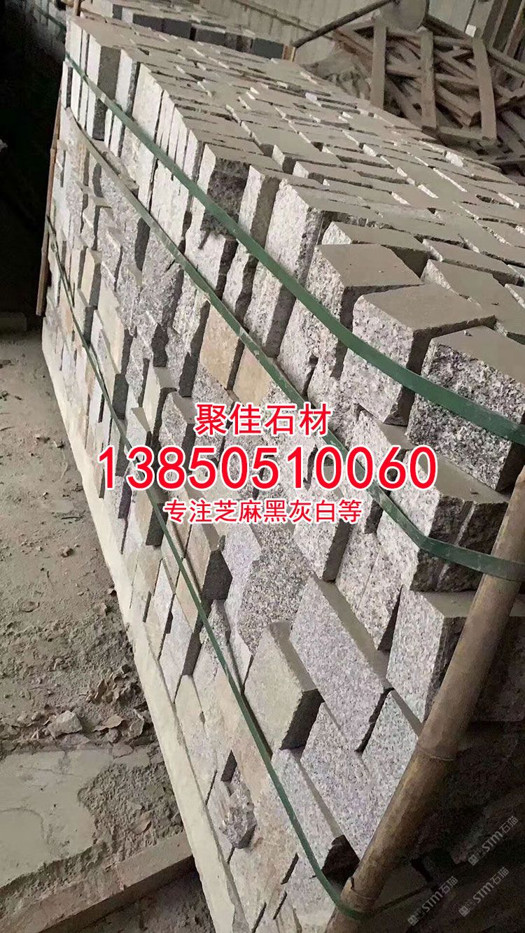 芝麻白芝麻黑石材自然面小方塊馬蹄石彈石方塊石鋪路石