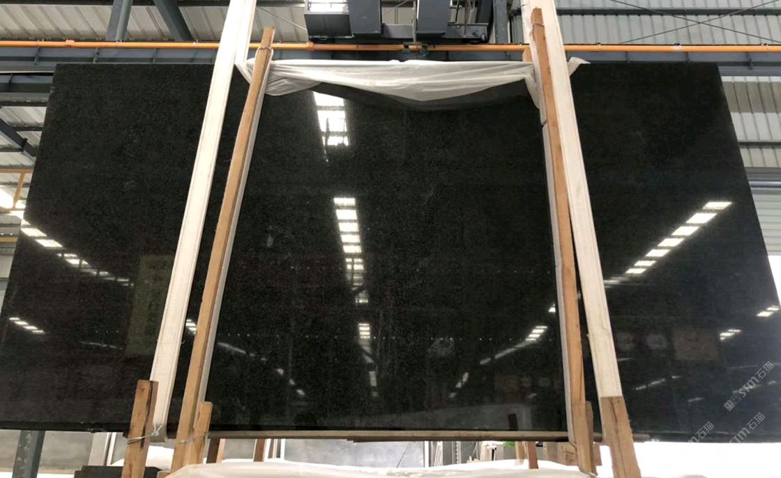 質(zhì)地異常堅(jiān)硬,吸水率近乎零, 光澤度高,板面無色差無瑕疵, 純黑透亮,屬高檔品種。