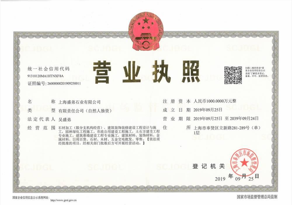 上海盛弟石業(yè)有限公司 聯(lián)系人:吳盛弟    134****0356 查看 134****0356 查看 主營范圍: 大板批發(fā)、 企業(yè)地址:上海嘉定區(qū)曹安公路4058號