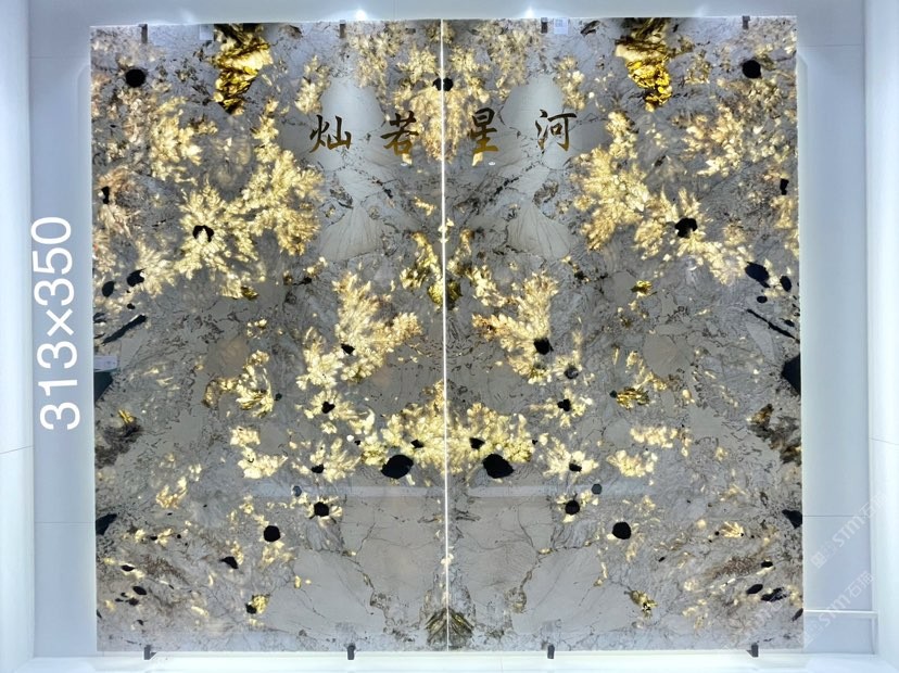 孔雀開(kāi)屏對(duì)拼奢石背景上新