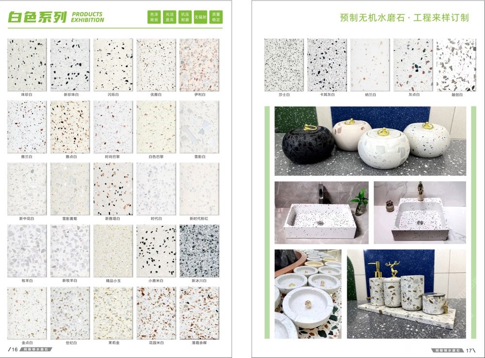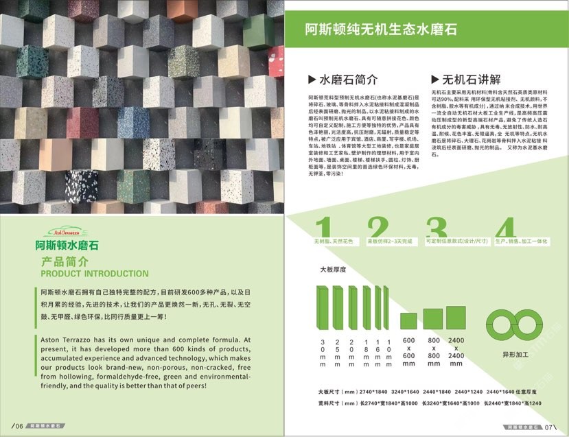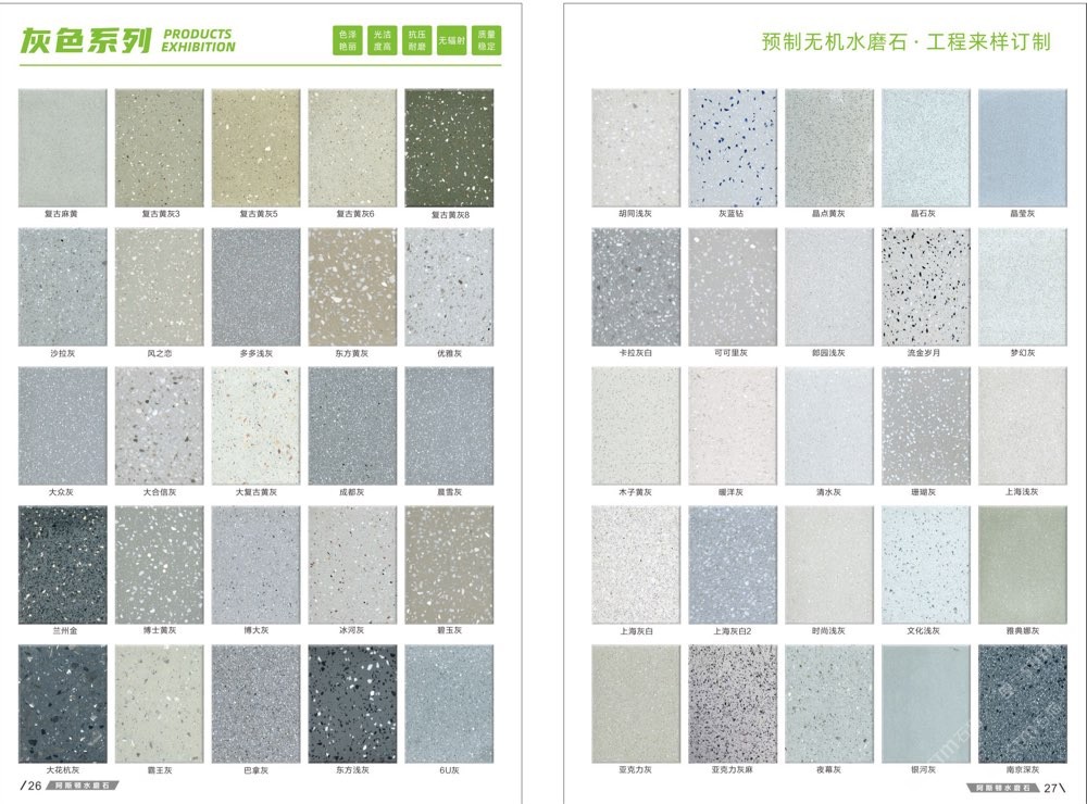 發(fā)布信息: #阿斯頓水磨石 新版畫冊預告,喜歡嗎 純無機水磨石,專業(yè),品質(zhì)保證! ① 無樹脂、天然花色 ② 可定制任意款式(設(shè)計/尺寸) ③ 來板仿樣2~3天完成 ④ 生產(chǎn)、銷售、加工一體化
