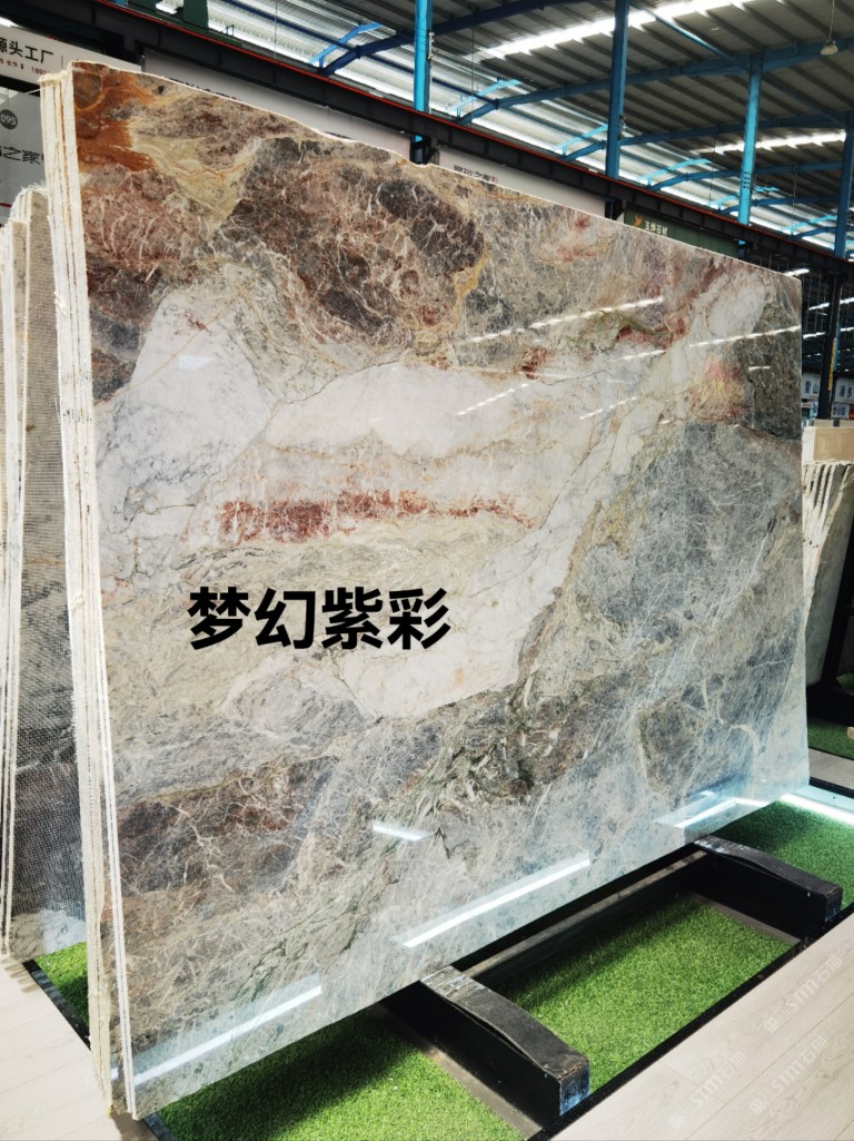 這個(gè)也是四季粉的同一個(gè)礦,叫夢(mèng)幻紫彩。歐洲人非常喜歡的,有一顆料2600x1860!沒(méi)有正反磨