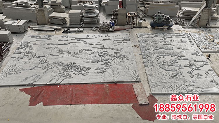 美國白金紫氣東來珍珠白雕刻板石雕浮雕中式裝飾壁畫