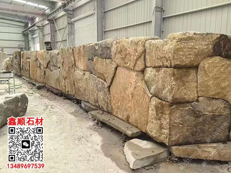 商圈 > 花崗巖 > 黃銹石壘墻石自然面墻磚天然石皮背景墻護坡石黃色毛石