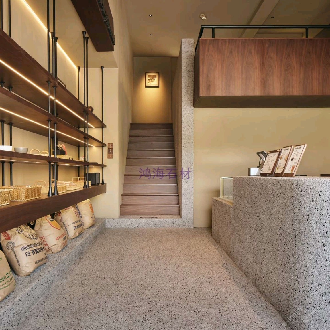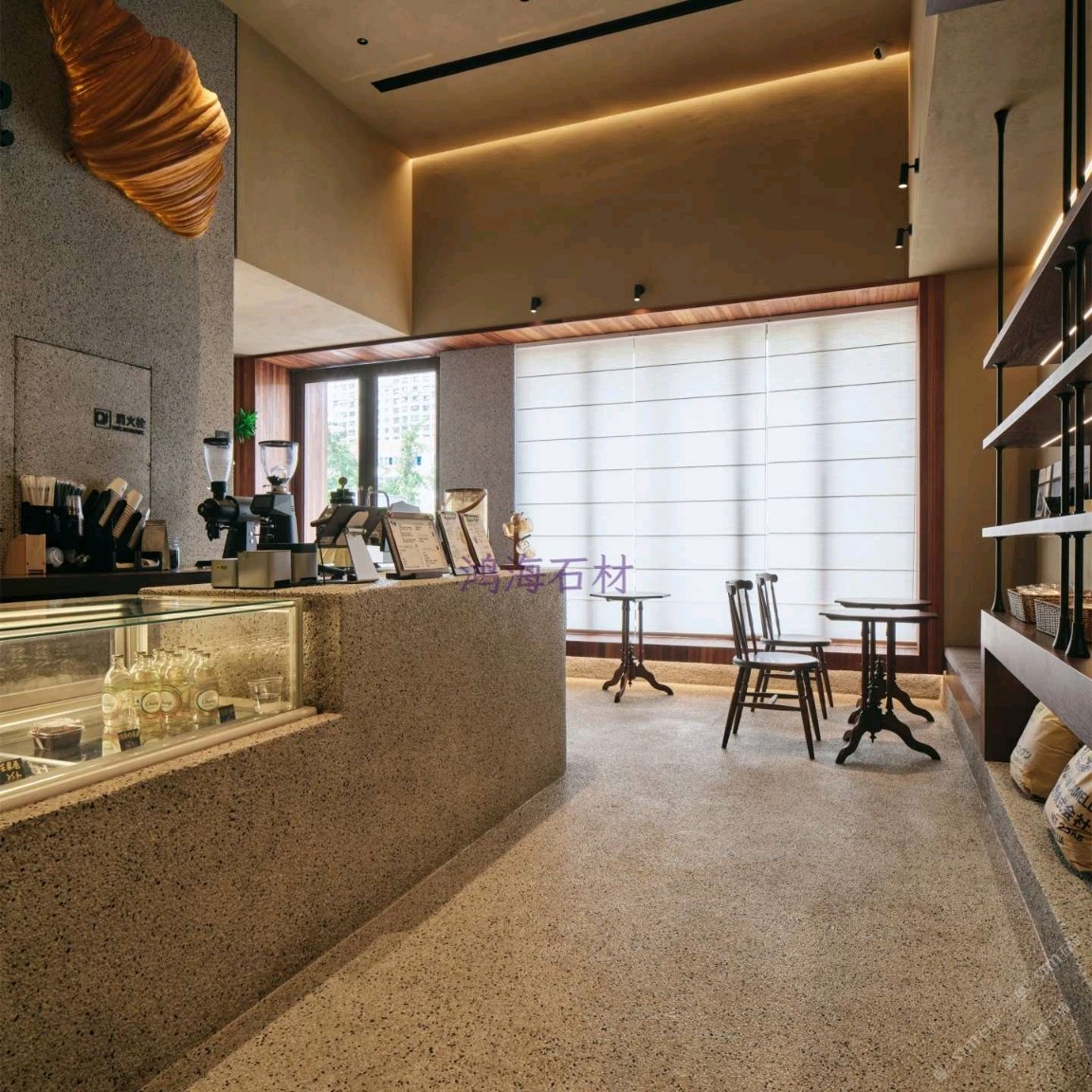 發(fā)布信息: 咖啡店設(shè)計干貨|水磨石 木格柵的組合 一進(jìn)門就被水磨石打造的吧臺狠狠洗衣,顆粒感的肌理搭配溫潤的木質(zhì)吊柜,觸感和視覺的碰撞真的太妙了~ 墻面的“與你相識雖不晚”直接戳中內(nèi)心,旁邊的巨型可頌裝置既是裝飾又點明了品類,細(xì)節(jié)感拉滿。 動線設(shè)計也很舒服,點單區(qū)和取餐區(qū)劃分清晰,哪怕人多也不會覺得擁擠,把功能性和美學(xué)平衡得恰到好處。
