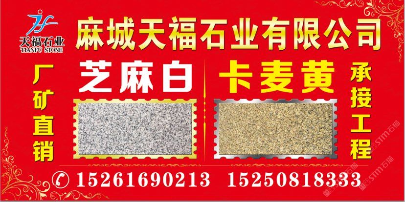 發(fā)布信息: 天福石業(yè)【主營經(jīng)營】芝麻白(603#)、卡麥黃.602#.芝麻灰、銹石、黃金麻、卡拉麥里金·毛板、光板、火燒板,荔枝面成品板及臺階石、蘑菇石~路沿石、擋車石,圓球.圓柱.異形、仿形加工工藝品等。適合用于各種場合, 優(yōu)質(zhì)礦山資源以質(zhì)量求生存、以信譽求發(fā)展。聯(lián)系電話:15250818333