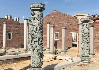 四川青石龍柱萬源青柱墩?qǐng)A柱欄桿寺廟古建祠堂線雕雕刻
