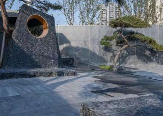 黑山石水缽,置石,售樓部造景