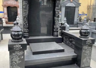 G654芝麻黑柬埔寨黑黑色墓碑石套墓花崗巖石材廠家