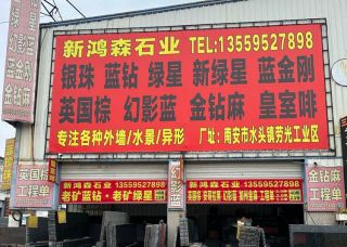 新鴻森石業(yè)主營產品:綠星1,新綠星,藍珍珠,銀珠,幻影藍,藍金剛1,七彩啡珠,皇室啡,英國棕(黑紅),安哥拉黑(黑水晶),金鉆麻(巴西),灰珍珠企業(yè)地址:福建南安建材市場40棟23號