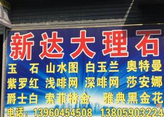 新達(dá)大理石主營產(chǎn)品:奧特曼(旺程礦),紅龍玉4,紅龍玉3,黑龍玉,山水畫6,白雪公主,白玉3,土耳其玫瑰,紅寶石,索菲特金,白玉蘭企業(yè)地址:福建南安水頭閩南建材市場(chǎng)加工區(qū)A幢32-33號(hào)。