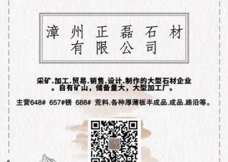 福建龍輝石業(yè)主營產(chǎn)品:英國棕(老礦),漳浦紅G648,印度白金,雅士白1(人造石),漳浦銹石,G657,喬治亞灰3,翠綠(水磨石),雅白(水磨石),灰色(水磨石),白鷺(水磨石),卡拉白(水磨石),泰瀚灰(水磨石),雪影白(水磨石),卡其黑(水磨石)企業(yè)地址:福建泉州南安市水頭鎮(zhèn)仁福工業(yè)區(qū)